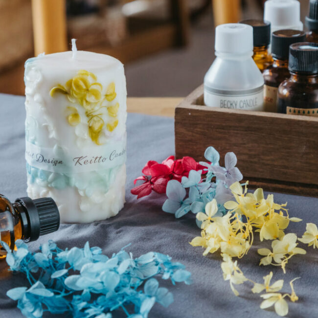 【Keitto Oppi】お好きなお花を使って♪キャンドルランタンとミニアロマキャンドル作り