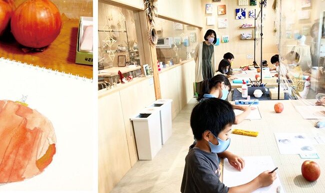 【KeittoOppi】プロのイラストレーター ナシエさんから学ぶ月1回子供絵画教室 12月コラージュ制作「クリスマスプレート」