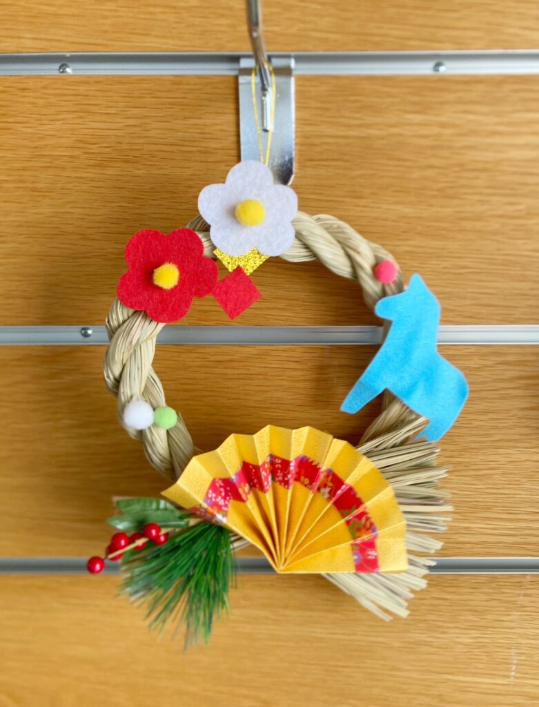 しめ縄部分はあらかじめ出来上がっているものを使用するのでお子様にも簡単に作成いただけます。