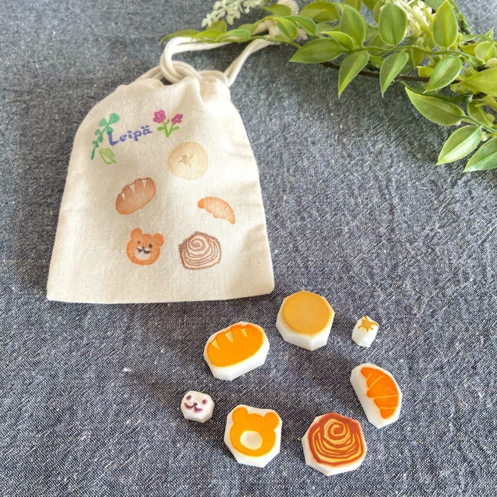 Keitto Leipaのパンや北欧デザインの消しゴムはんこを使って、