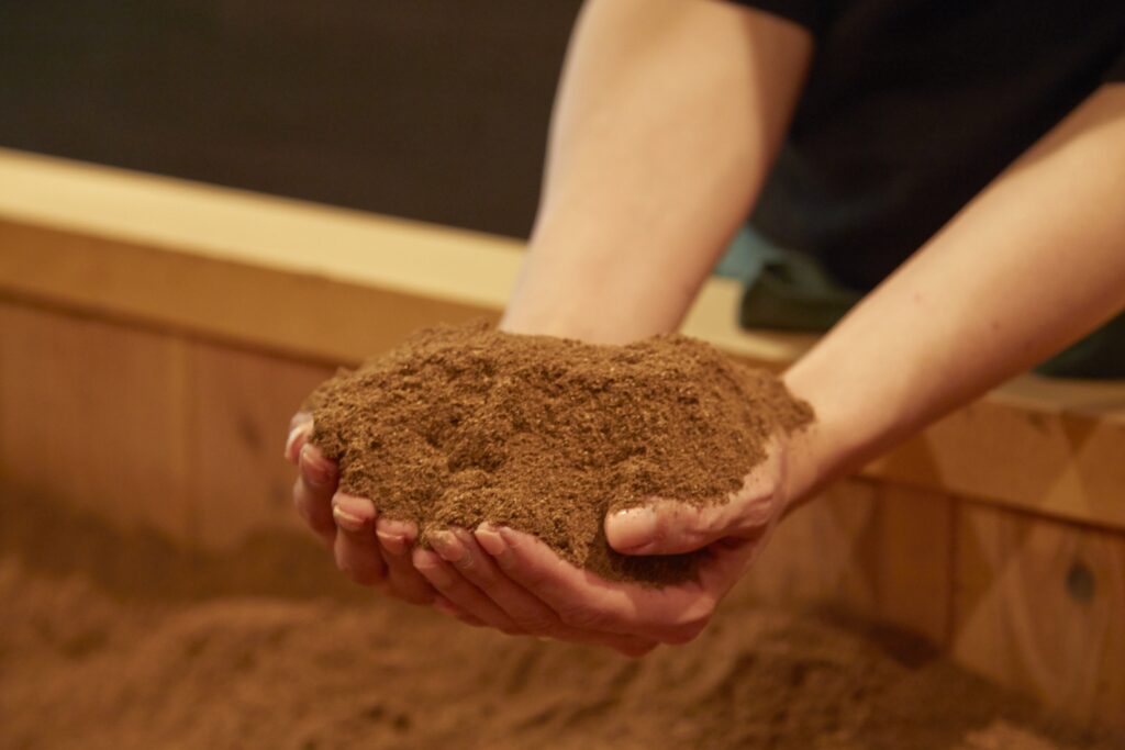 米ぬかやおがくずなどの自然素材が発酵する際に生まれる“発酵熱”を利用した酵素浴。