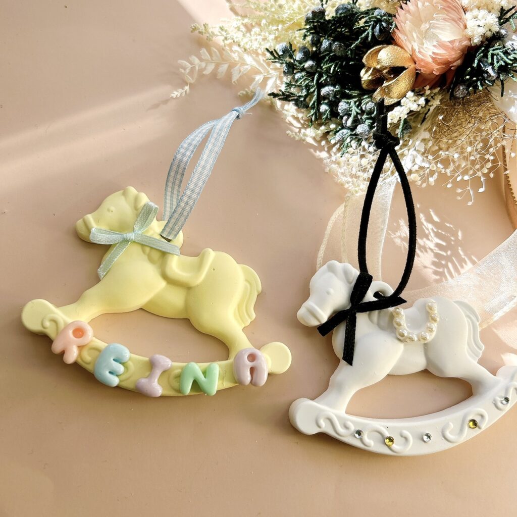 お好きな色の木馬アロマストーンに、デコレーションをして可愛く仕上げます。