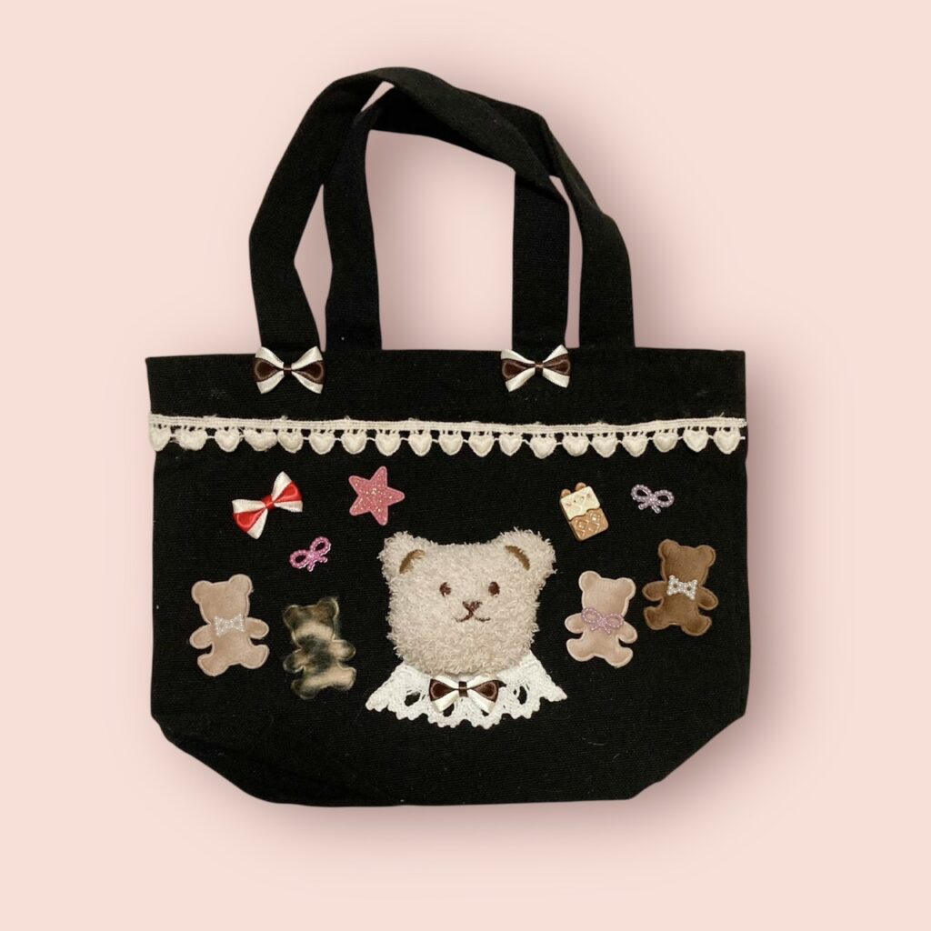 クマちゃんのぬいぐるみに、お洋服やリボンをデコレーションして、オリジナルのポーチやバッグをつくります♪