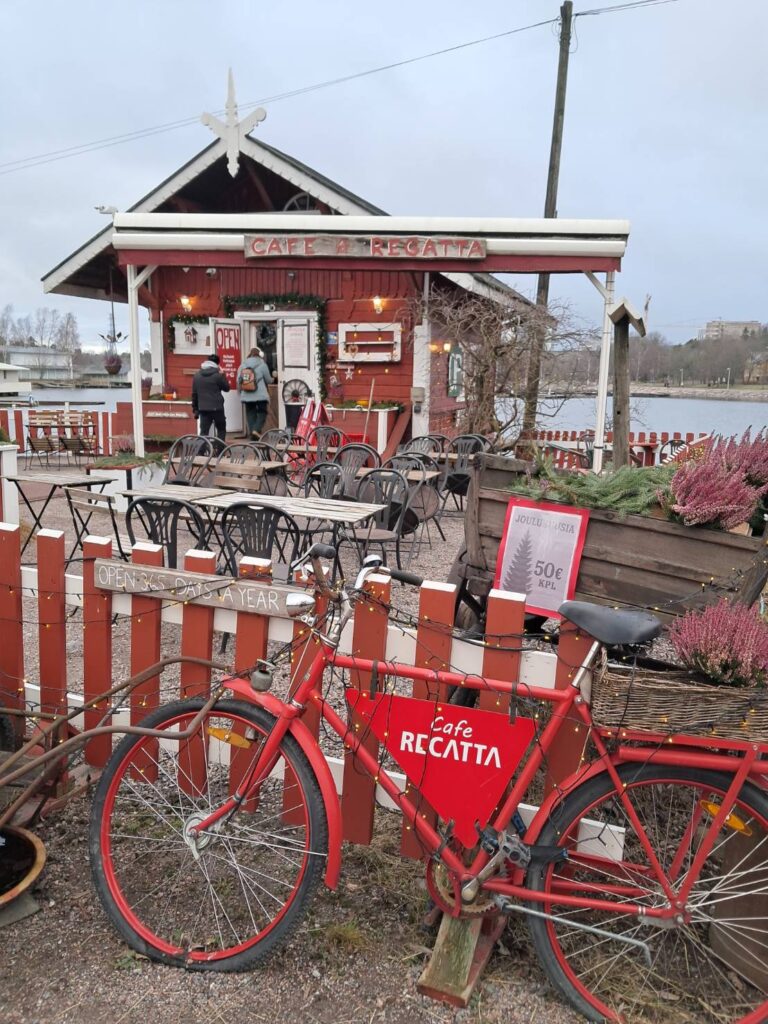 ヘルシンキの海辺に建つ、赤い小さな木造カフェ「Regatta」。