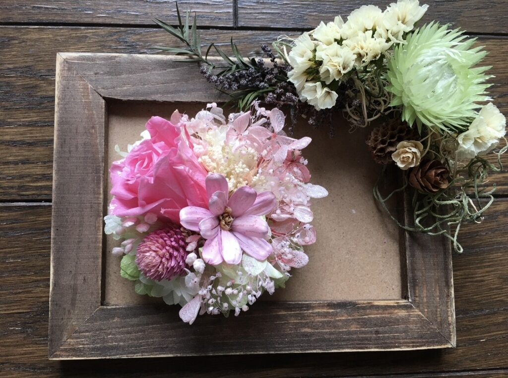 プリザーブドフラワーとソラフラワーを使って、 好きな色やお花でオリジナルのコサージュをつくりましょう。 入学式などのイベントやお部屋のインテリアとして飾ってもかわいいです♪