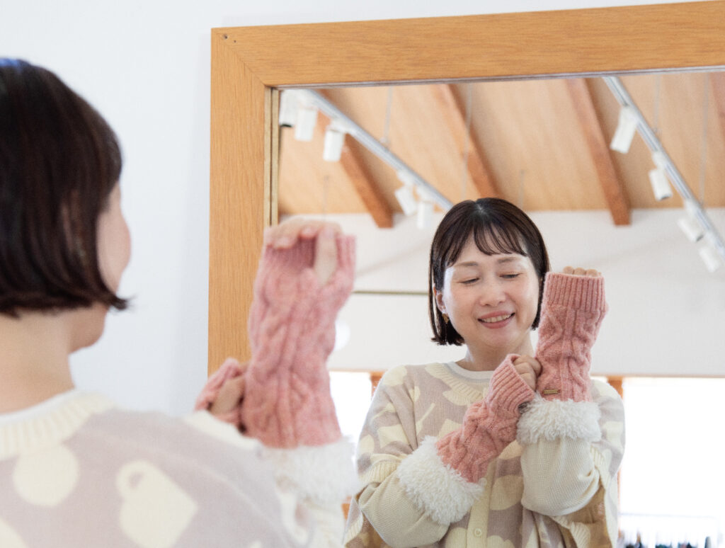 朝夕の冷え込みが増す頃、冬の装い展に向けた打ち合わせに参加したゆみこさん。スタッフや作家さんが集まり、テーマやそれぞれの役割を共有しながらアイデアを重ねます。打ち合わせの後は作家さんたちで集まりゆったりとおしゃべり。冬の始まりに、手づくりが好きな仲間と過ごす心あたたまる時間となりました。