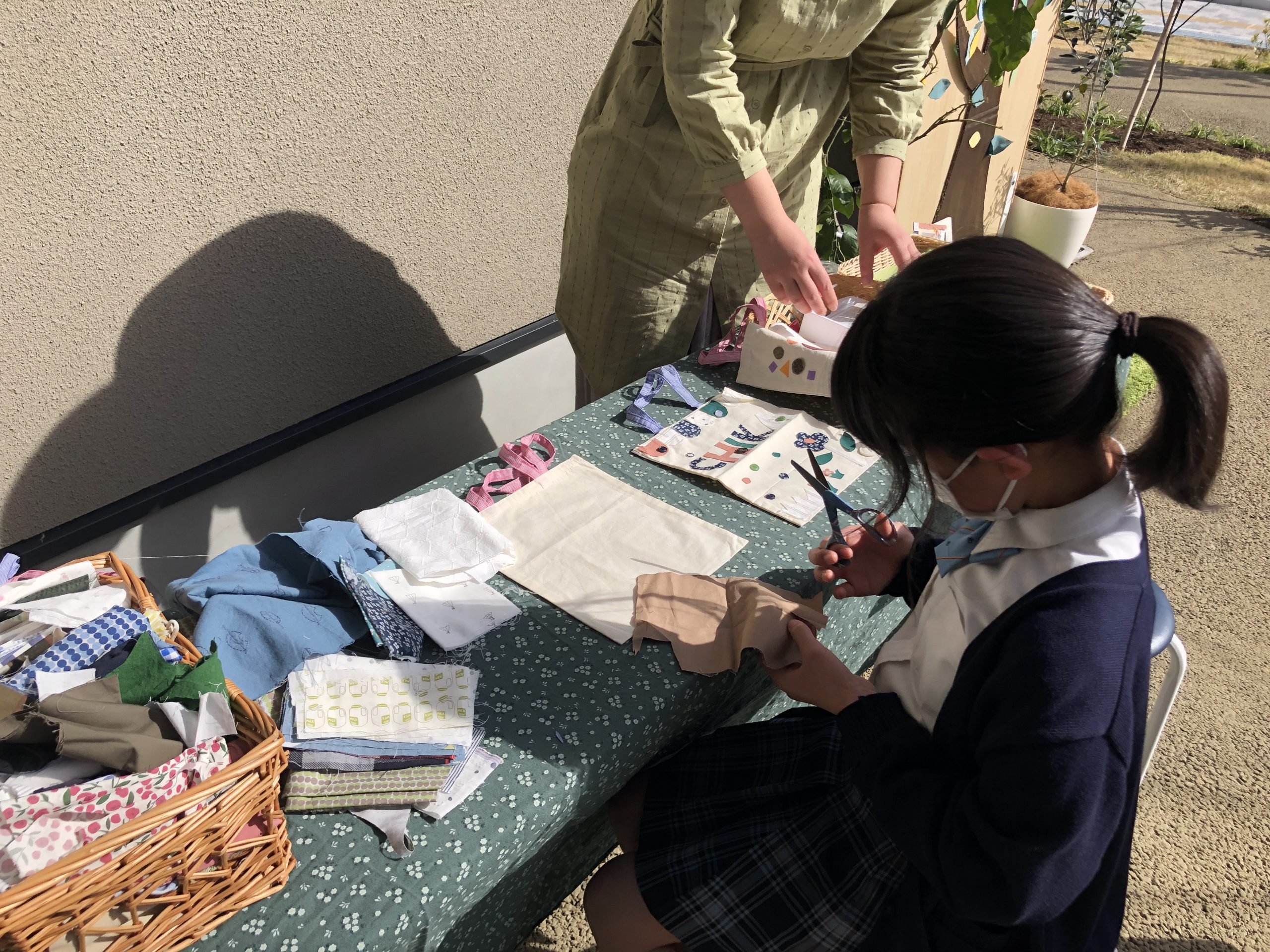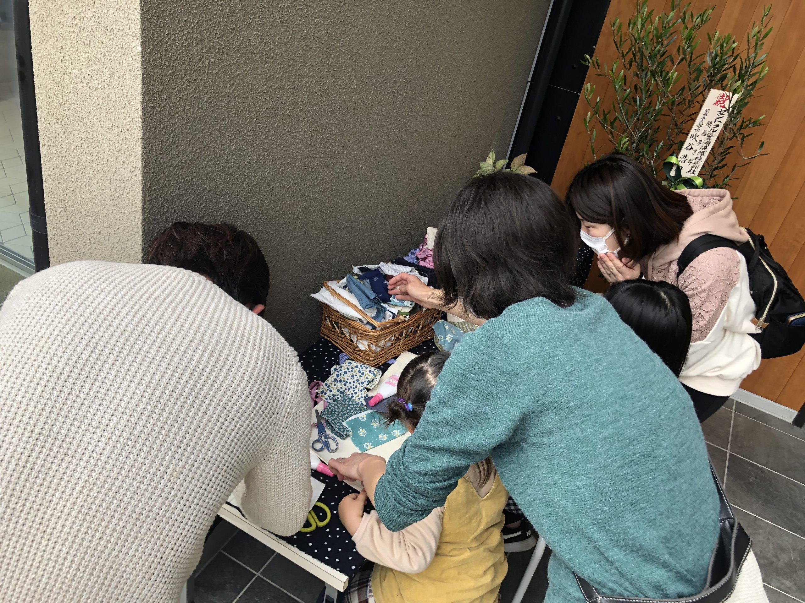 会場内には、青空の下ちょっとした手作りワークショップ(布を切り貼りして作るトートバッグ)を楽しめるスペースもあって、ご家族や姉妹でも楽しんでいただいてました。