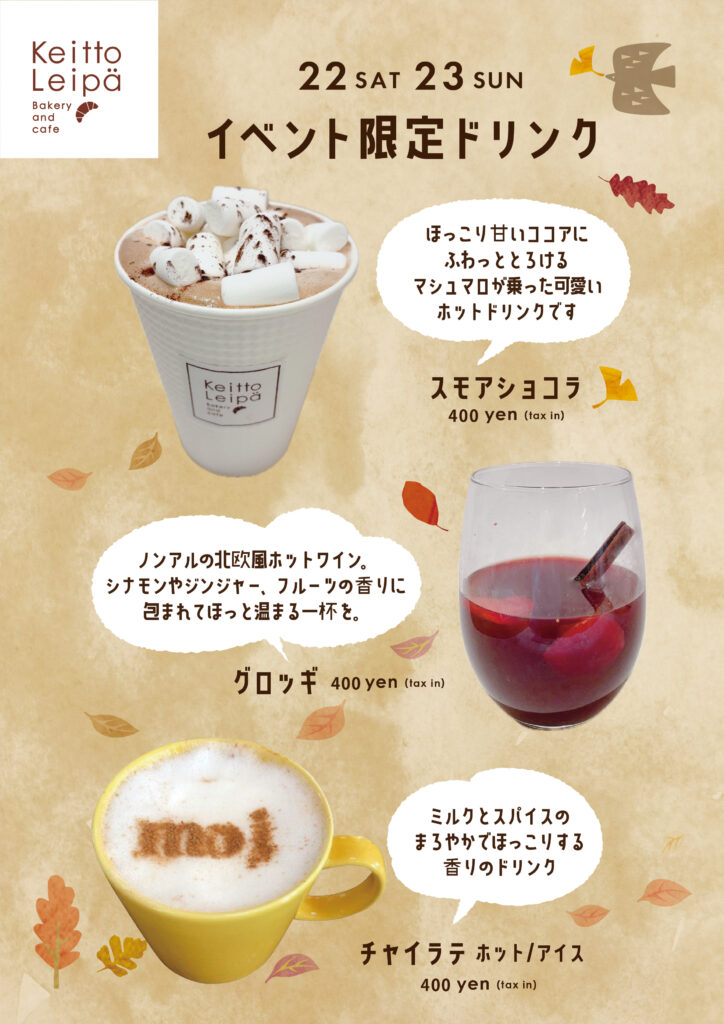 深まる秋のひとときに、コーヒーと楽しむ限定メニューを、ぜひKeitto Leipaでお楽しみください♪