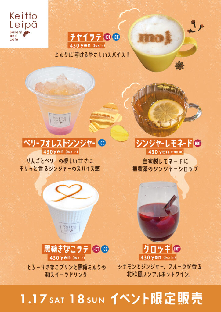 Keitto Leipaのパンやドリンクで、寒い季節にぴったりのからだも心もほっと温まるひとときをお過ごしください。