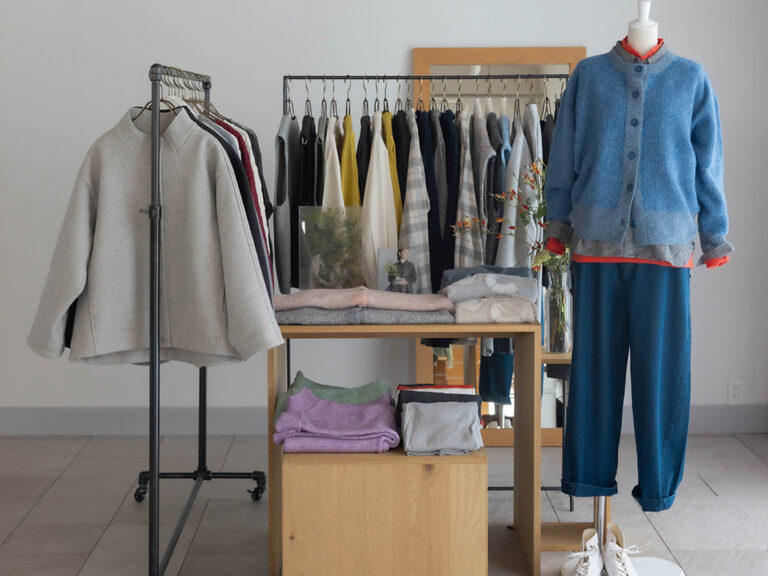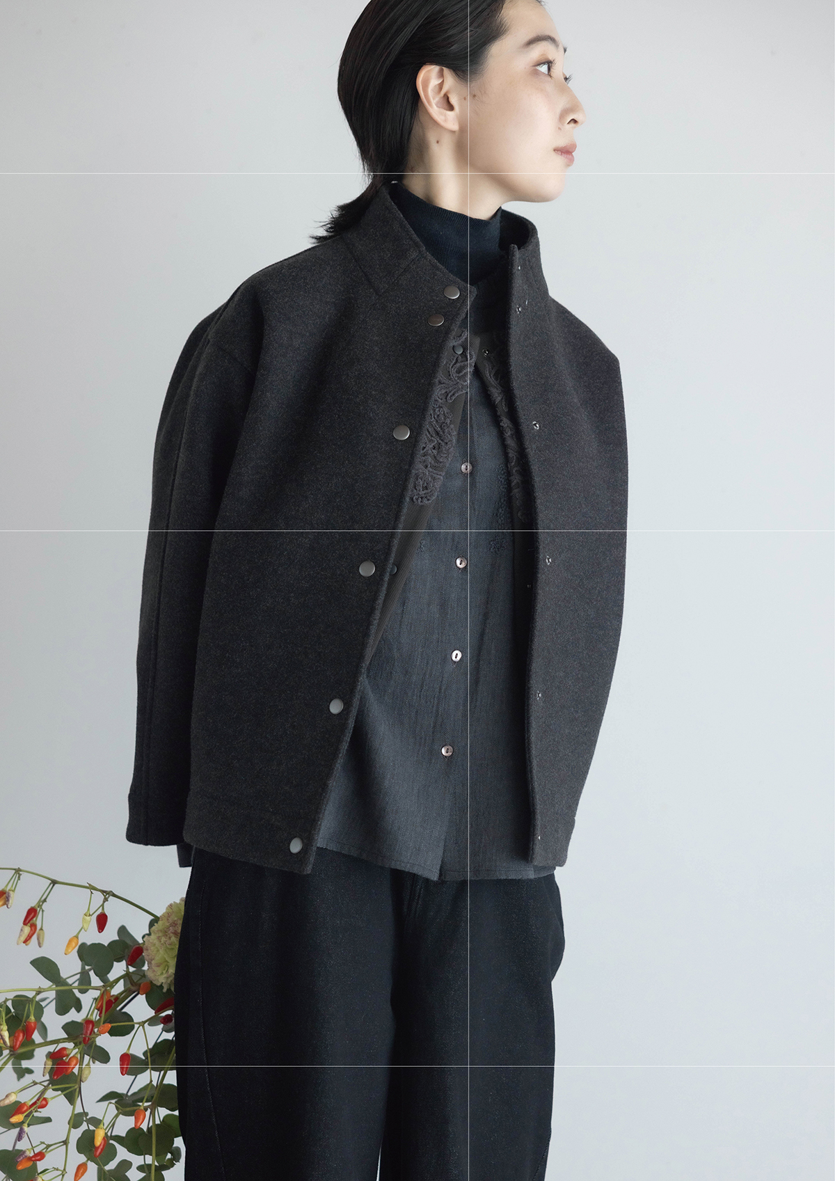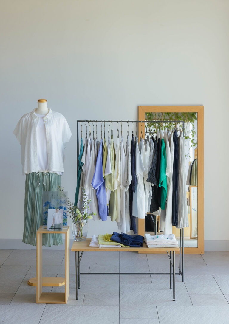 お客様の生活スタイルをイメージし、日常着としての着心地や取り扱いやすさを考えながら、着る人の自信をほんの少し後押しできるような凛としたアイテムを。新鮮な気持ちでいつも手に取っていただけるように、あったらいいなと思えるデザインを企画することを心掛けています。