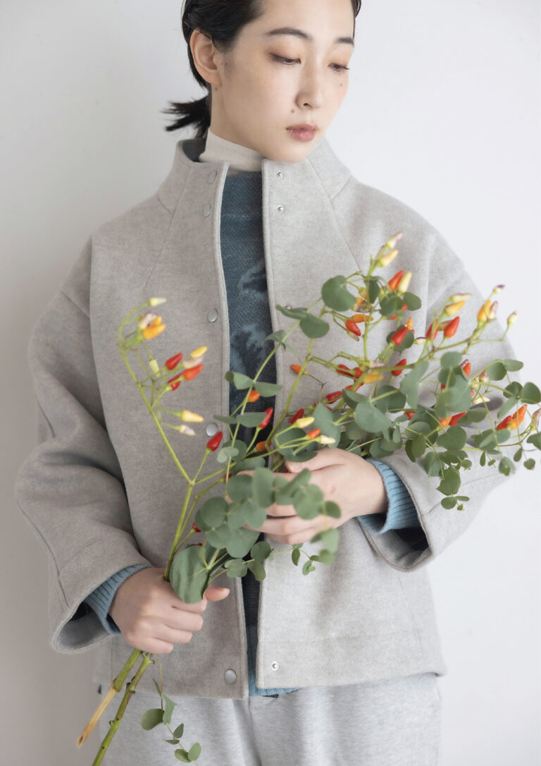SIJJ5560スタンドカラーボンディングブルゾン(ライトグレー)