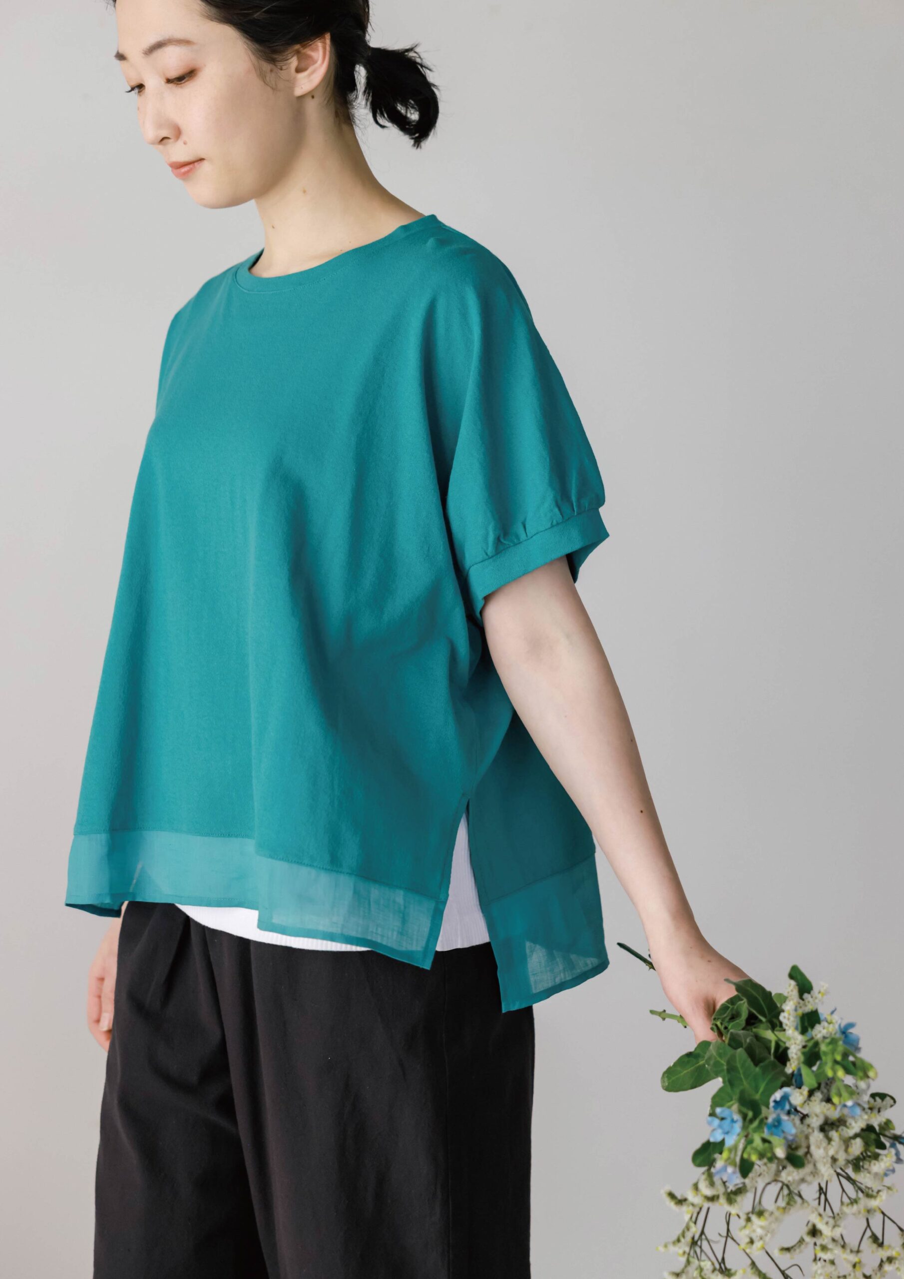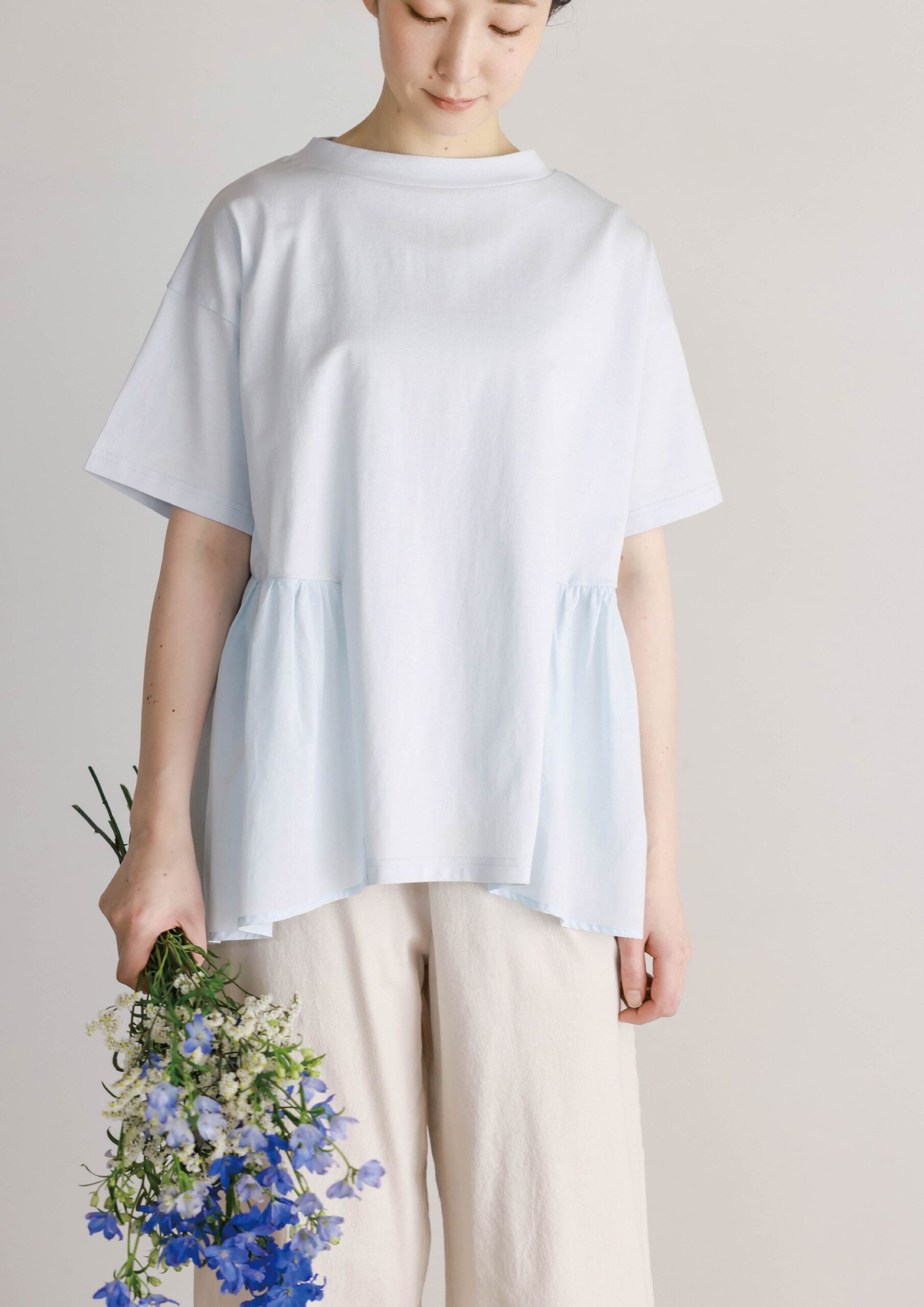 SDCF6149 ヘムフレアTシャツ/ライトブルー