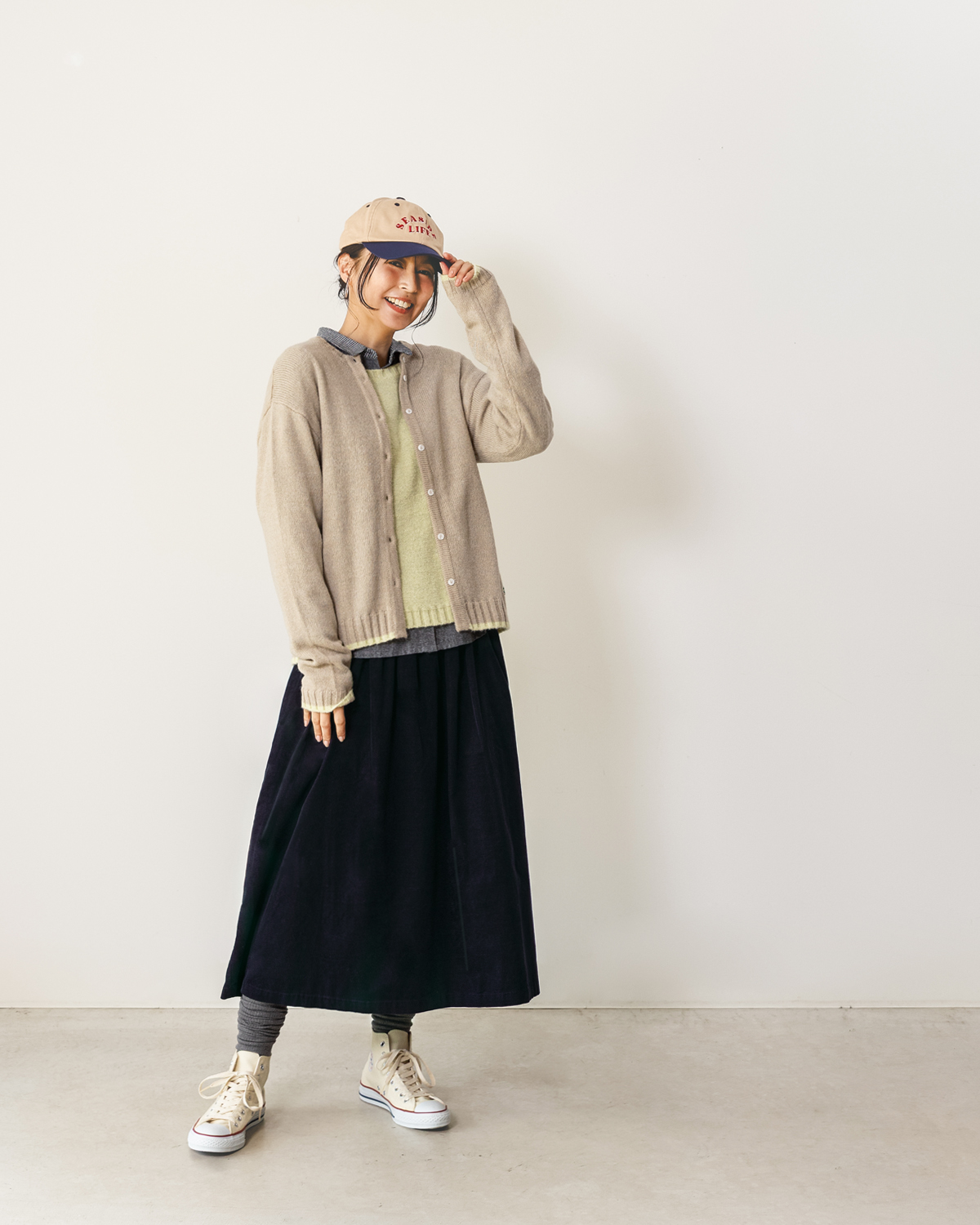 NHBF5589コーデュロイギャザースカート(カーキ)