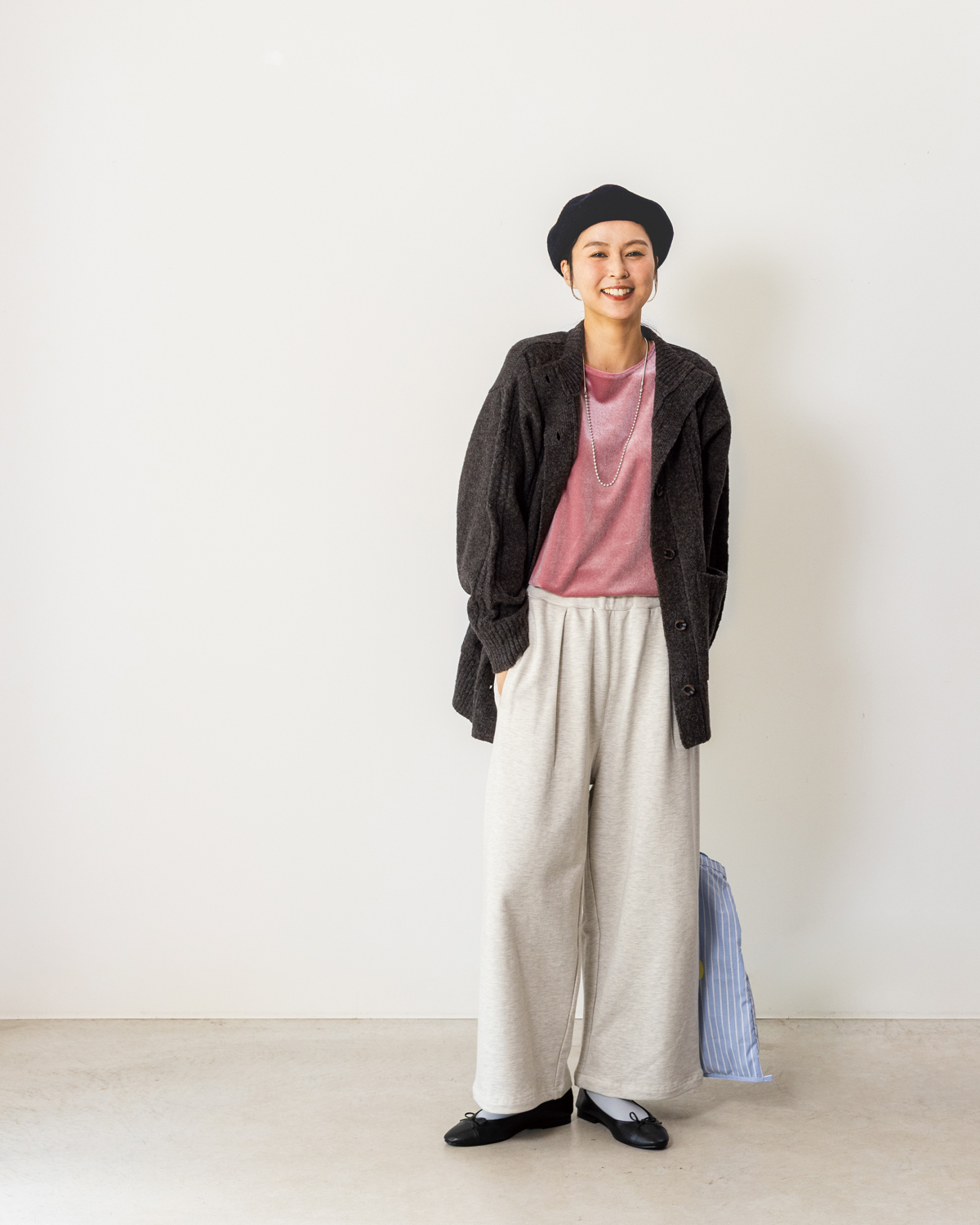 NHB55605 スウェットルーズストレートパンツ(オートミール)
