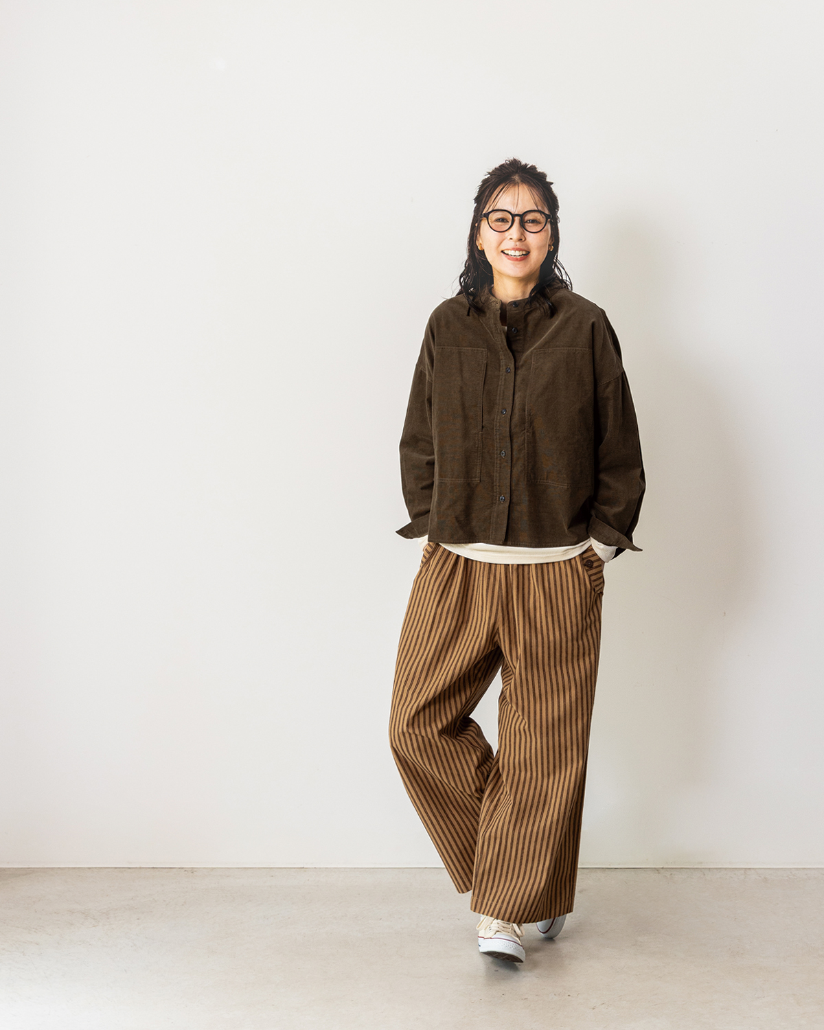 NHBS5591 ストライプイージーパンツ(キャメル)