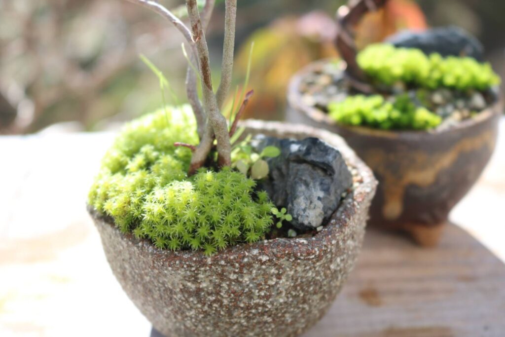 手のひらサイズの鉢に、この木!と惹かれる木をお選び頂き、鉢上に小さな景色をつくるワークショップです。