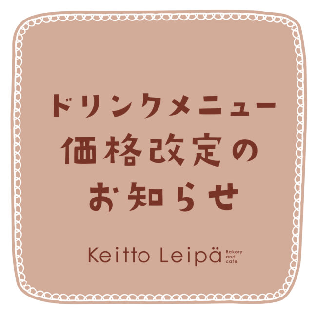 【Keitto Leipa】ドリンクの価格改定のお知らせ