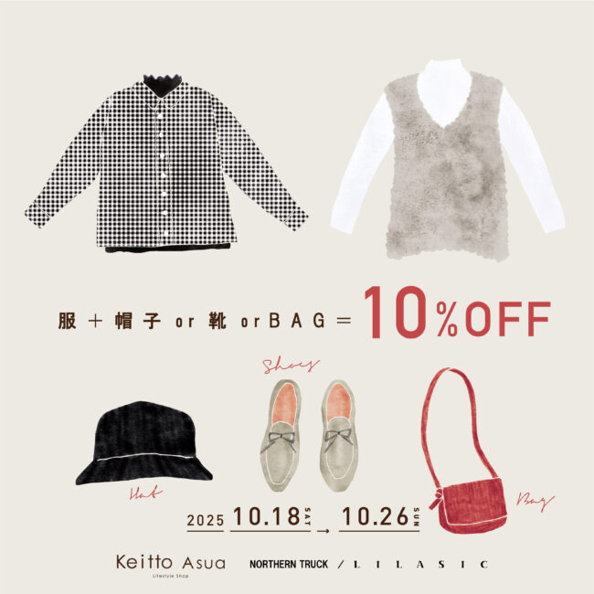 【Keitto Asua、NORTHERN TRUCK/LILASIC】10%OFFキャンペーン