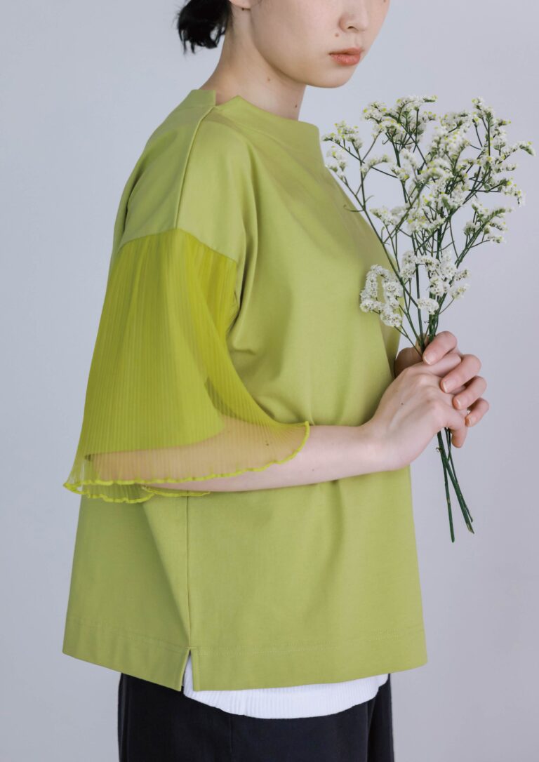 SDCE6152チュールスリーブボトルネックTシャツ/ライトグリーン