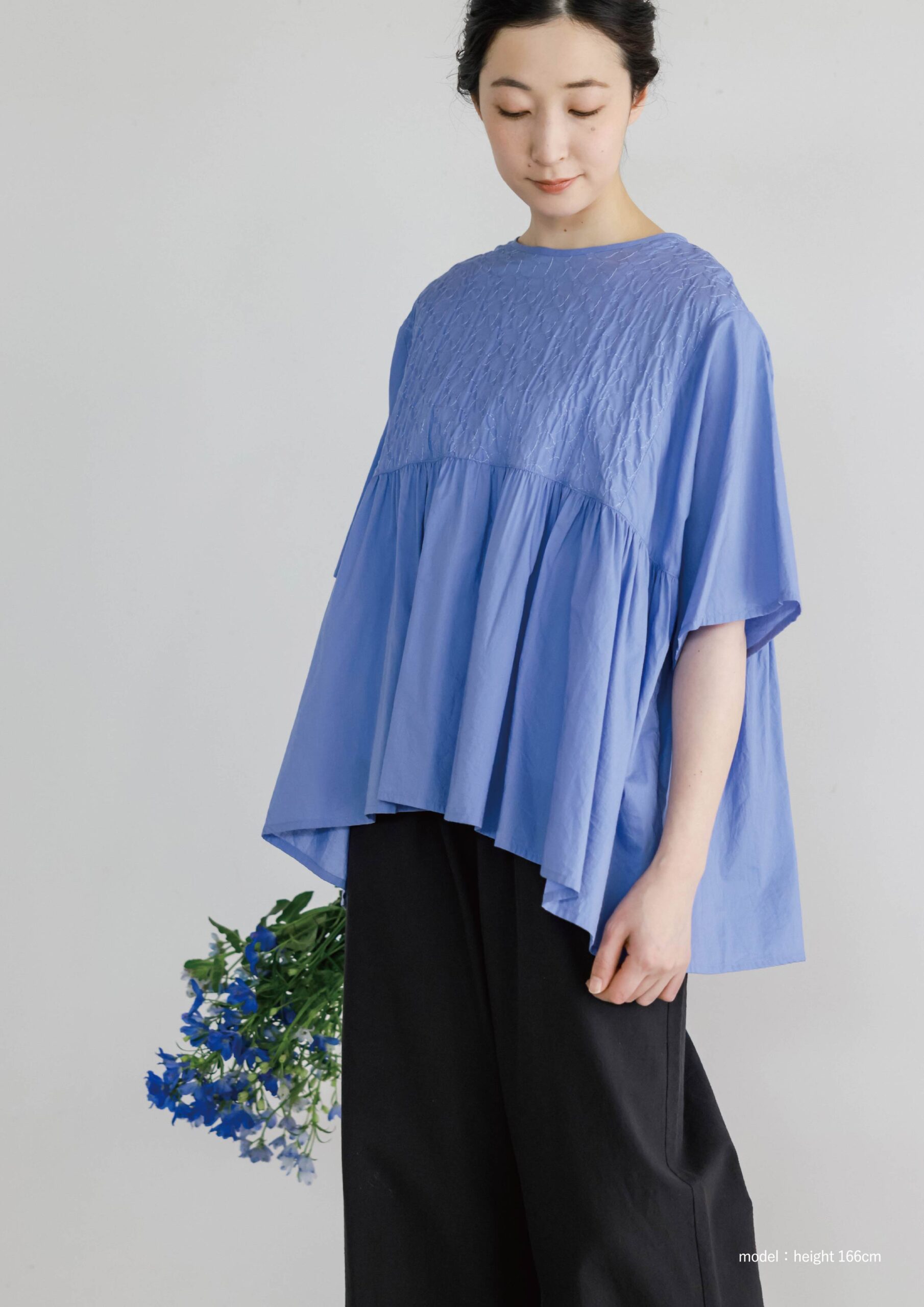 SDK76133 エンブロイダリーシュリンクギャザープルオーバー/ブルー